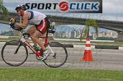 As I transitioned to the bike I made sure I was cautious this year instead of the previous year in France when I almost crashed at the start trying to get on the bike and in the process losing 2 water bottles, my gloves, and some food. This time I kept everything got on my bike but then moved forward but I did manage to cut myself in the back on my calf with the gear crankshaft. (Totally hurt but whatever… I looked tough with blood running down the back of my leg) The bike stage of the Ironman Brazil was a breeze compared to hilly France the previous year. Florianopolis, Brazil was a flat and fast 112 miles and I rode it in just under 5hr 30min compared to France 6hr 17min with dead legs. However, throughout this course many people crashed because they had these crazy speed bumps in the middle of the road. Some of the streets were cobblestone and you had to ride through on narrow roads with big road reflectors. Many of the competitors had launched themselves off of the bike by riding over these reflectors. I was good and kept my cool and used my endurance from Rowing, Spinning, and the weight training to help me keep balanced and strong on the bike. I must have eaten 12 bananas and drank 20 water bottles. It rained throughout a 40 mile section on the bike which was scary but it was a bonus because the weather was cool and the sun came out later. Perfect weather throughout the Ironman just like Long Beach, Ca.