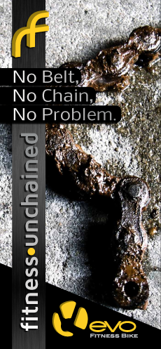 The Evo Fitness Bike frame is made with an innovative cantilever design that has gone through rigorous static and dynamic testing. Each bike is highly constructed in order to handle up to a 350lb individual. Other bikes are getting lighter while the EVO holds it’s own and stays safe on the ground with it’s extremeley stable oval platform while giving you the security to sway away on the bike with comfort and ease. Many other bikes I have tried actually start hopping around on the floor because they are too light and unstable. While lifting up on the back part of the cycling stroke I often lift the bike up off the ground while out of the saddle. This is not realistic in real cycling nor is it safe to the cyxlist or instructor while trying to teach class. It becomes unsafe and distracting to everyone that uses bikes that are not grounded in weight. The EVO weighs approximately 140lbs!